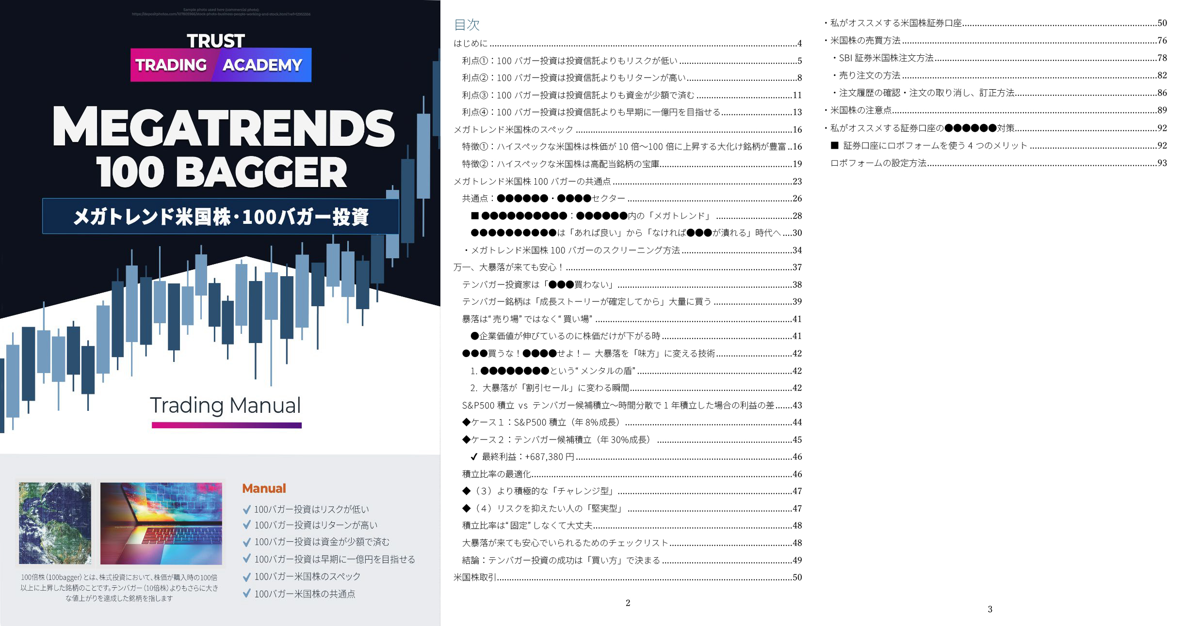 株式の売買に際しては、証券会社ごとに所定の手数料が発生します。投資判断および取引はあくまで自己責任で行っていただき、無理な取引はお控えください。株式投資は価格変動リスクを伴い、損失が生じる可能性があります。また、本商品は著者と同等の利益を保証するものではございません。さらに、特定の銘柄に対する売買の指示・強制・助言を行うものではありません。